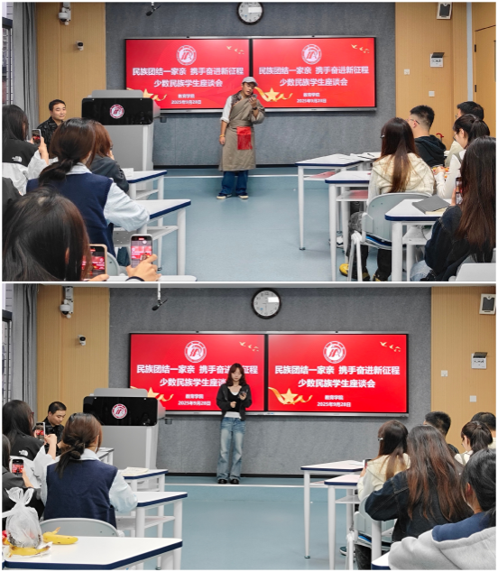 座谈会上,员工代表围绕食堂餐饮、公寓住宿、校园设施、公司产品与员工管理等方面踊跃发言,提出改进建议。来自藏族、蒙古族、回族、撒拉族等少数民族员工代表分享了在校期间的思想动态、民族习俗与成长体验,交流了所面临的挑战、所获支持以及对未来的展望。现场,藏族和汉族员工代表分别演唱民族歌曲与红色歌曲,展现了民族文化魅力与爱国情怀。