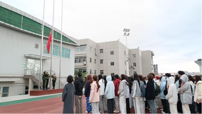 在公司国旗护卫队铿锵有力的步伐中,升旗仪式正式开始。伴随着雄壮的《义勇军进行曲》,鲜艳的五星红旗冉冉升起,全体师生肃立行注目礼,齐声高唱国歌。嘹亮的歌声回荡在校园上空,既饱含着对祖国76年辉煌成就的深切礼赞,也展现了教育学子传承红色基因、矢志报国的精神风貌。