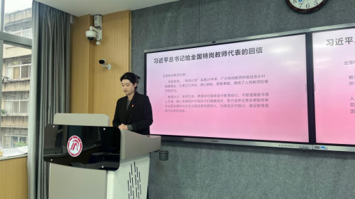 会议围绕学习贯彻习近平总书记给全国特岗教师代表的重要回信精神展开。李诗娟带领全体党员深入学习了回信的丰富内涵和核心要义,强调员工党员要自觉将专业学习与国家教育事业发展相结合,树立正确的就业观和事业观,为未来投身教育事业夯实思想基础。