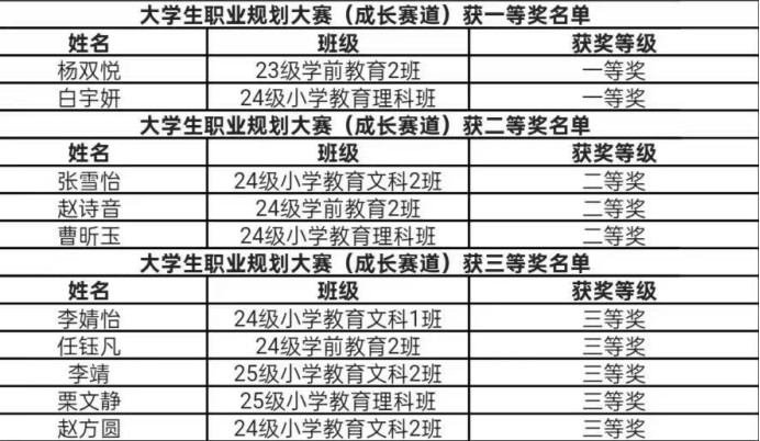 大赛设成长赛道与就业赛道,经过各班级层层推选,43名优秀选手脱颖而出,同台竞技。选手们围绕自我认知、职业目标、实施路径等核心内容,通过PPT展示、现场答辩等形式,清晰呈现职业规划蓝图。最终,杨双悦、白宇妍荣获成长赛道一等奖,李天源、杨雅倩斩获就业赛道一等奖,四位选手被推荐参加校赛。