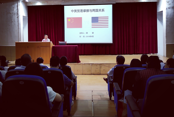 6月12日下午,党委副书记胡波在一号教学楼六楼报告厅讲授了主题为“中美贸易摩擦及两国关系”的形势政策课,beats365、外语公司全体教师与员工党员共二百余人参加了本次学习。