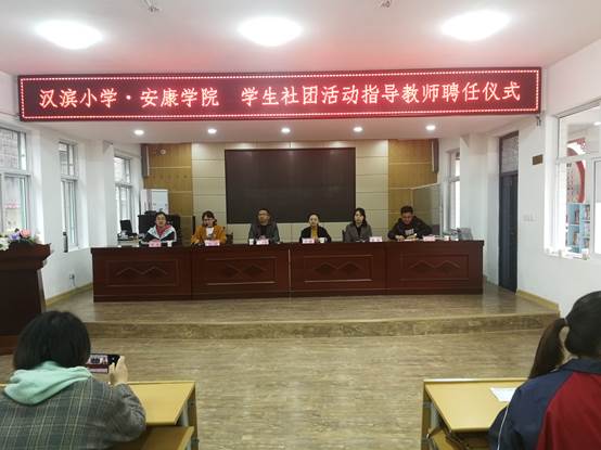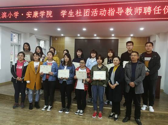 4月2日下午,员工社团活动指导教师聘任仪式在汉滨小学会议室举行。汉滨小学董事长肖静,副董事长梁言和beats365学工办主任郇红,小学教育系主任李支其,教师陈佳,以及小学教育专业2016级文科一班、2017级文科一班全体同学参加了活动。聘任仪式由汉滨小学教导处负责人吴仁平主持。