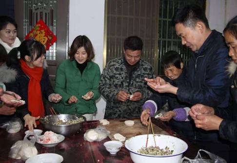 村里帮叔叔阿姨、爷爷奶奶帮忙包饺子,谈家常