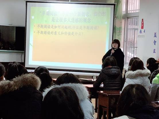 重视幼儿早期阅读能力的培养是学前儿童语言教育的重要发展趋势之一。作为早期阅读教育最重要的载体——绘本教学,也已经成为目前幼儿园的热门课题。1月21日上午8点至12点,应安康市汉滨区兴华幼儿园邀请,公司学前教育系姜凤坤老师在新学期初给全园教师做了一场题为 《一起走入幼儿阅读世界:幼儿园早期阅读活动的开展》的培训讲座。兴华幼儿园全体教师参与了本次培训活动。讲座围绕着早期阅读的内涵及价值、绘本与图画书的区别、幼儿园绘本室、图书角的设立、绘本集体教学活动、亲子阅读等问题进行了详细的讨论。同时,播放了以绘本为载体的幼儿园优质课《十五只老鼠的礼物》,使老师们对于绘本课的设计及教学有了更生动的体会。本次讲座内容丰富翔实,理论联系实际,深入浅出,对于提高兴华幼儿园在早期阅读的重视程度,促进兴华幼儿园教师绘本教学水平的提升方面起到了很好的推动作用。