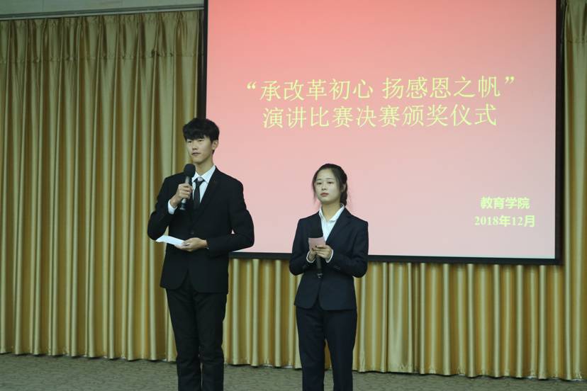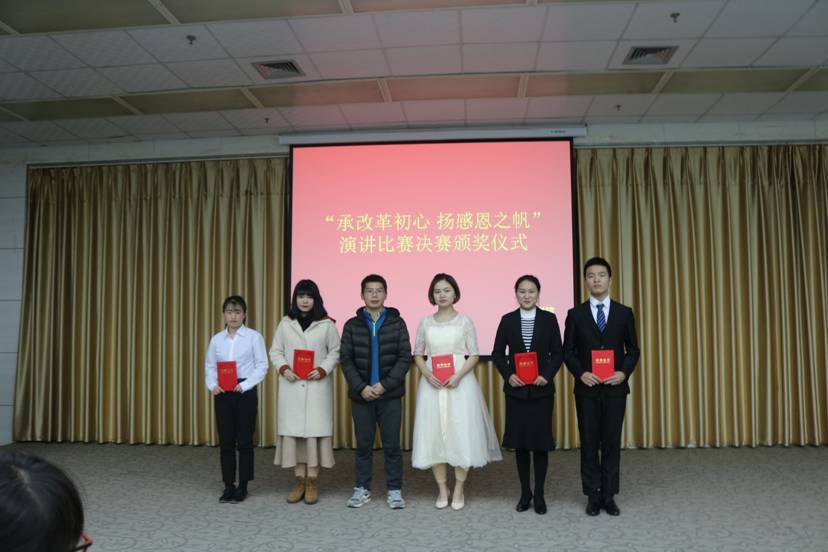 为进一步弘扬中华民族传统美德,增强员工们的感恩意识,beats365于2018年12月6日晚上八点在图书馆六楼报告厅举办了“承改革初心,扬感恩之帆”主题演讲比赛。莅临本次比赛的评委有:郇红老师、李园园老师、刘冠芳老师、毛乐老师和冯磊老师,本次比赛由赵威恩和孟思阳两名同学主持,公司党总支书记屈咏梅老师作为特邀嘉宾出席。