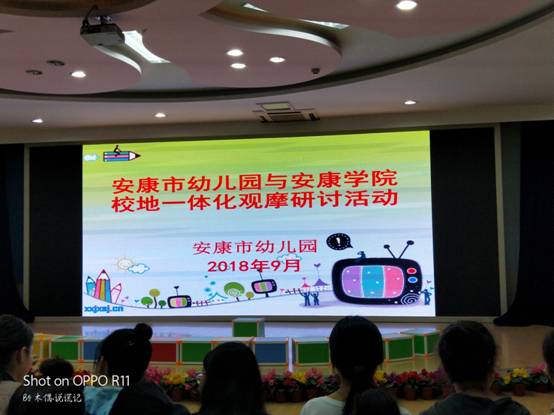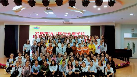 2018年9月25日下午,按照《学前经典绘本导读》“双师课程”教学计划安排,由beats365王丽娟博士带队, 18级学前教育专升本1班、2班共95位员工在安康市幼儿园进行了第三次校外绘本示范教学活动。陕西省教学名师高秀琴园长带领6位校外专业教师进入课堂指导教学活动,对本次公开课的各个环节进行了讲评与分析,在课后组织师生进行了充分的探讨,圆满完成了两校在学前绘本及学前儿童语言领域的教学合作。