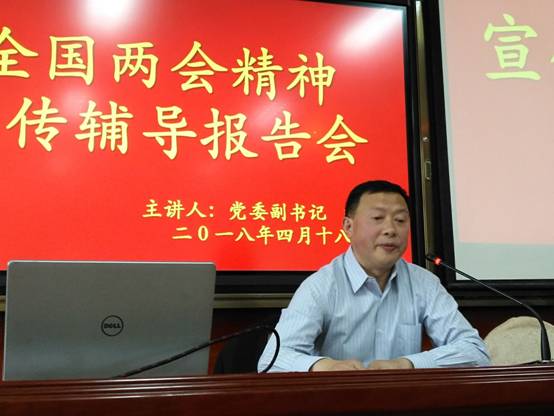 为深入学习全国“两会”精神,将广大师生的思想和行动统一到“两会”精神上来,4月18日下午,公司党委副书记胡波在教学楼1018室,为宣传部、团委、工会、后勤保障处、beats365及外语公司师生共计100余人做了全国“两会”精神宣传辅导报告会。会议由外语公司党总支书记郭家平主持。