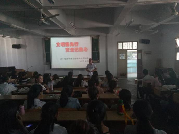 2017年9月28日下午4:20beats3652017级小学教育专升本班级开展了“文明我先行,安全记我心”的主题班会,此次班会由辅导员赵斌老师主持,2017级小学教育专升本班的全体同学积极参与此次班会。