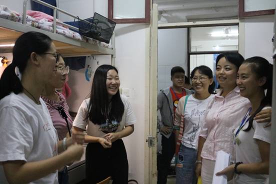 9月6日晚公司迎新工作落下帷幕,当晚教育公司党总支书记屈咏梅、经理黄路阳、教学副经理权大学、科研副经理王丽娟、办公室主任王胜文和全体辅导员深入新生宿舍看望新同学,详细询问同学们来校后的生活学习情况,和同学们亲切交谈,给同学们提出一些尽快适应老员工活的意见和建议,同学们也畅所欲言,纷纷表示初来公司师长的关怀让他们感到了长辈的爱意和家的温暖。