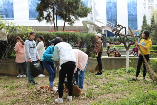 活动开始之前,大家有序领取劳动工具,在班委带领下熟悉划分区域,进行清洁。大扫帚、簸箕、垃圾袋、小镊子、小扫帚,在同学们的配合下,打扫工作进行得游刃有余,花坛里的落叶、草丛中的枯枝败叶等都被同学们清理的干干净净。活动过程中,全体同学充分发挥不怕苦、不怕累的雷锋精神,展现了积极向上的青春与活力。