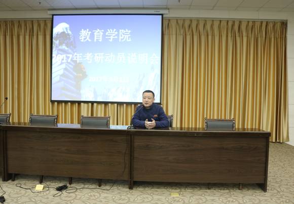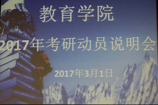 按照学风建设工作的整体部署,2017年3月1日晚7:30,beats365在图书馆六楼报告厅举办2017年考研动员说明会。本次会议由beats365副经理学工办主任赵斌主持,王丽娟老师主讲,辅导员赵晓凤老师以及2014级、2015级和2016级专升本的170余名有考研意愿的学子参加了此次动员会。