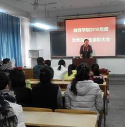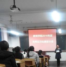 2016年12月2日下午四时,beats365在1405教室举行“2016—2017学年度教育见习优秀见习生”表彰大会。出席本次大会的有beats365小学教育系主任王贞惠老师、学前主任韩歌萍老师、陈珂老师、钱敏老师、高艳艳老师、李支其老师、王丽娟副经理等及四十余名来自2014级小学教育、学前教育和2016级专升本各班的优秀见习生代表。