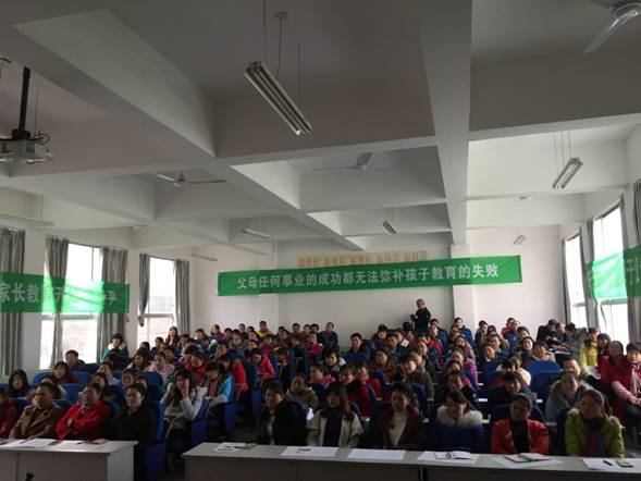 本次讲座的主讲教师是国家二级心理咨询师陈玲老师。讲座的主要内容分为三部分:一、做孩子选对的父母;二、帮助孩子建立高自我价值;三、为孩子树立正确的未来人生方向。陈老师语言风趣幽默,举例生动具体,并通过团队活动体验式感知的形式,让家长参与感受了家教语言的力量,引导家长学习了正确的赞美与批评方式。最后,全体家长与教师一起学习了《家长规》,宣誓做合格父母,做卓越家长!
