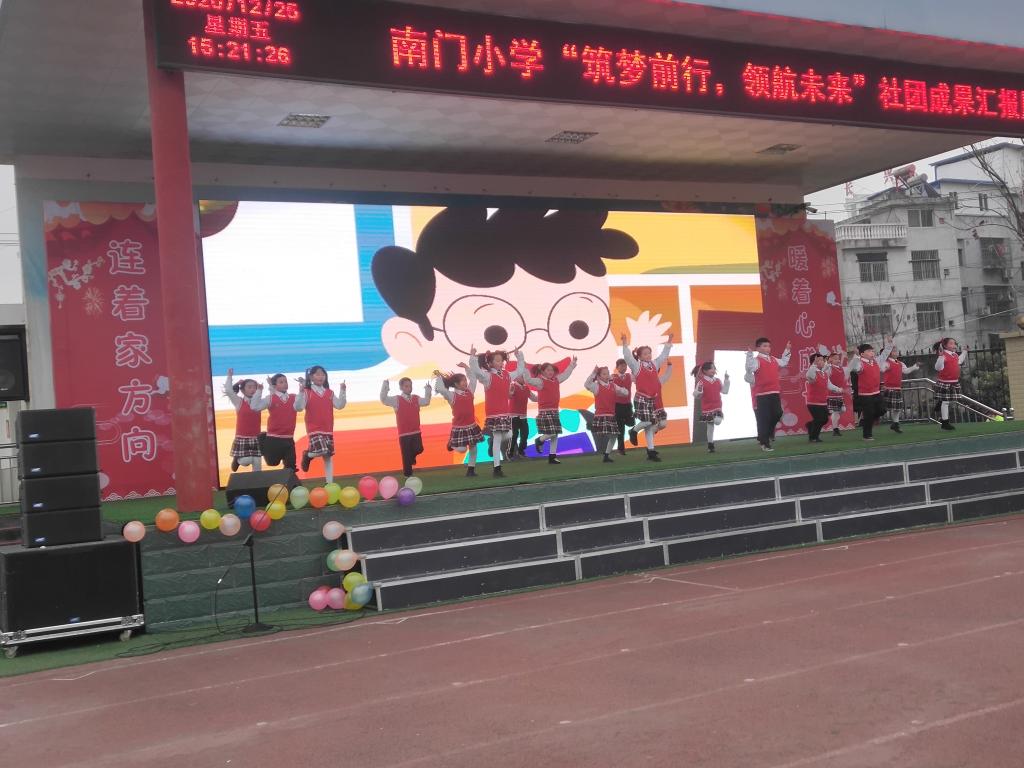 首先,开展的是南门小学社团活动展示,公司实习生参与的英语社团、古诗诵读社团、舞蹈社团获得与会嘉宾的好评。社团活动展示中各位实习教师各司其职,组织有序也赢得了实习单位的称赞。