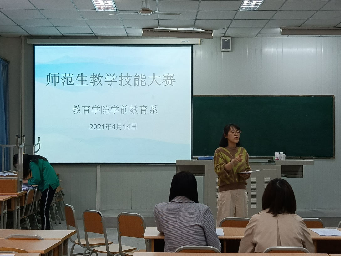 为进一步加强师范生教学基本功训练,秉承“以赛促学”理念。2021年4月14日下午公司学前教育系隆重举办了“学前教育专业师范生教学技能大赛”,学前教育专业20名员工参加了此次决赛。大赛邀请了4名学前教育专业教师作为大赛评委。