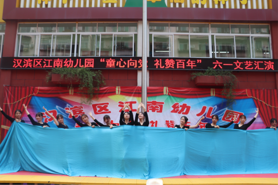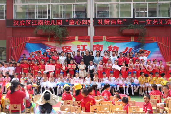 2021年5月31日上午,“童心向党 礼赞百年”六一文艺汇演在汉滨区江南幼儿园隆重开幕,beats365员工党支部为江南幼儿园的小朋友们送去了美好的祝福。教育公司党总支副书记赵斌、员工党支部书记刘晓松受邀出席本次活动,员工党员代表们共24人参与此次活动演出。