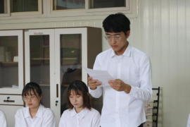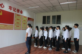 最后,党总支书记、各委员为17名预备党员佩戴了党徽,全体预备党员面向党旗,在支部书记刘晓松带领下17名预备党员进行宣誓。