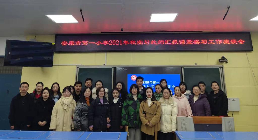 2021年12月10日,安康市一小召开了2022届教育实习中期检查汇报总结座谈会,会议由安康市一小教导处副主任曹文波主持,公司小学教育系主任陈珂、带队教师史丰教授、骨干教师陈佳、丁高奎,安康市一小董事长胡刚、副董事长王文琰、实习生结对指导教师及10名实习生参加了座谈会。