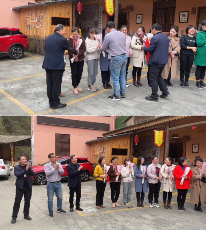 游戏结束后,公司党委副书记胡波和各位男同志为公司所有女同胞献上鲜花,并致以节日的问候。