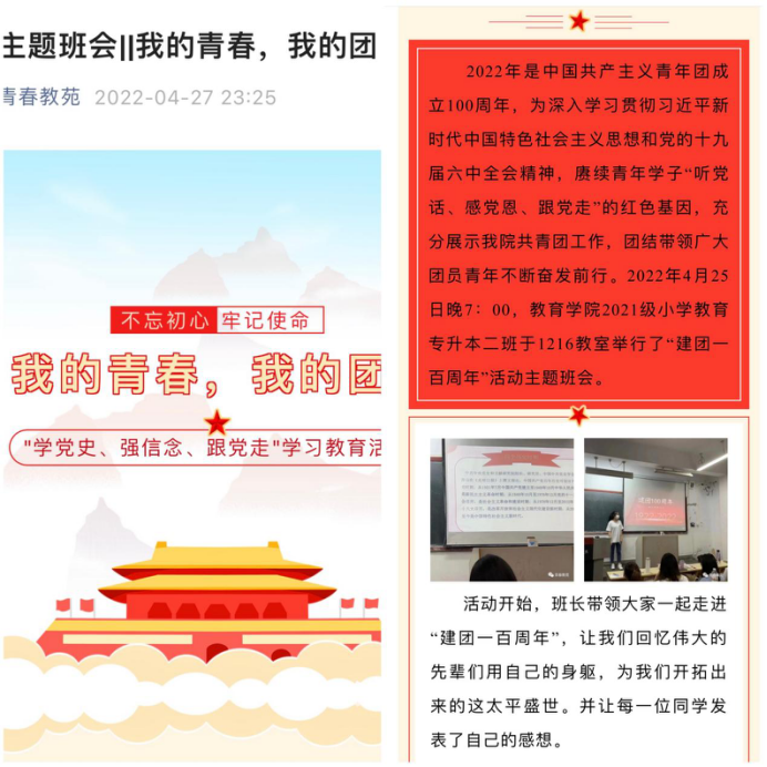 2022年是中国共产主义青年团成立100周年,为继承“五四”优良传统,大力弘扬“五四”精神,进一步传承共青团的光荣传统和优良作风,动员广大青年团员为实现“中国梦”贡献青春、智慧和力量,beats365团总支也组织各班开展了“扬五四精神,做有为青年”五四青年节主题班会。