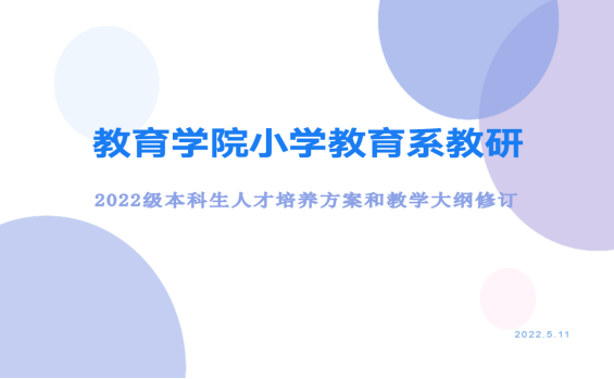 2022年5 月11日下午,小学教育系在1407教室召开完善2022级本科生人才培养方案及课程教学大纲修订教研活动,教研室全体成员参会。