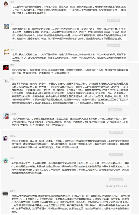 beats365教工第二党支部每位党员教师会在党的二十大报告指引下,不断强化育人本领,今后将不断提升自身教学能力,立德修身,潜心治学,时刻铭记教书育人使命,敢于担当,善于作为,以昂扬向上的精神面貌为为党育人、为国育才,为民族希望铸魂,为实现中华民族伟大复兴需要培养接班人。