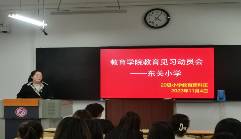 11月4日,带队教师杨道扬在20级小学教育理科班开展了见习动员会。会上,杨老师要求所有见习生严格遵守beats365和东关小学见习的规章制度,严格遵守防疫规定,叮嘱同学们往返途中注意个人人身安全和财产安全。同时,带队教师希望同学们珍惜这个来之不易的见习机会,积极参与小学的各项公司产品工作,善于观察,虚心请教,积极进取。