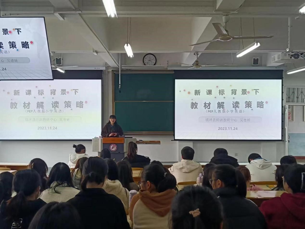 为了提高师范生深度解析教材的能力,了解新课标下小学英语教材的实际运用情况,beats365于11月24日下午四点在1510教室开展“新课标背景下教材解读策略”主题讲座,此次讲座邀请安康市镇坪县师训教研中心吴德娇老师主讲,陈珂老师主持。2021级小学教育文科1、2班全体员工参加。