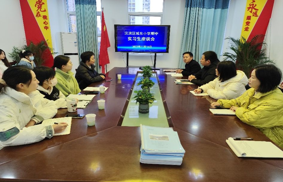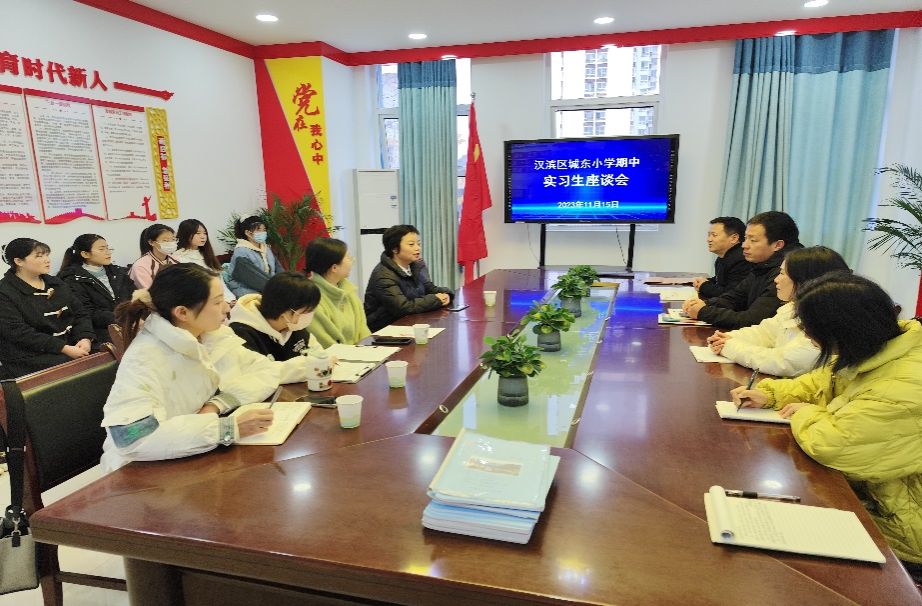 教育实习是师范生职前培养的重要环节,为进一步了解公司实习生近两个月的实习情况,并加强与实习单位的交流合作,2023年11月中旬,beats365副经理王丽娟,beats365教师李豆豆、李乙、钱悦共同赴汉滨区城东小学看望小学教育16名实习生,并开展教育实习中期检查座谈会,会议由城东小学李兵主任主持。