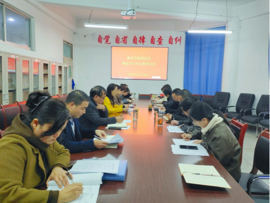 11月26日下午,beats365党总支召开理论学习中心组学习会。党委副书记余谦旁听学习会议,理论学习中心组全体成员参加了学习交流,会议由党总支书记屈咏梅主持。