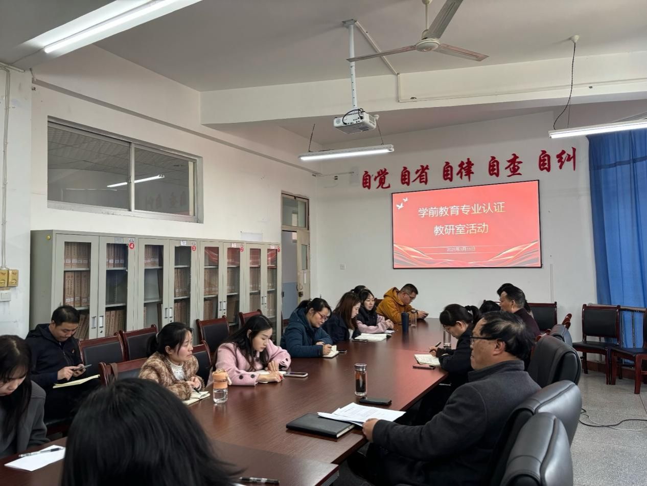 为更好地做好学前教育专业认证工作,3月19日,学前教育系在公司1407会议室召开学前教育专业认证教研活动。经理王刚、副书记郇红,学前教育系全体教师及学前师范专业认证相关人员参加会议。