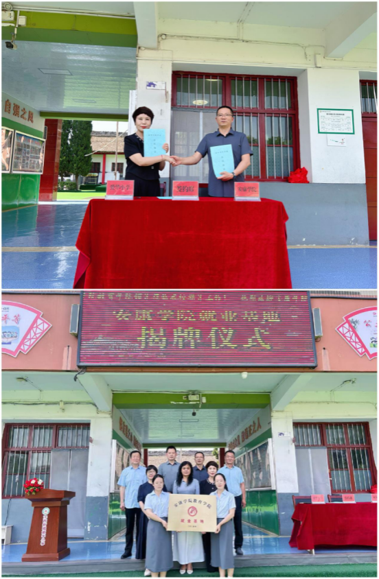 在沣西新城爱华小学,双方围绕基础教育发展、团队需求、人才培养模式等进行了深入交流与探讨,现场签订了《就业基地共建合作协议》并举行了授牌仪式。