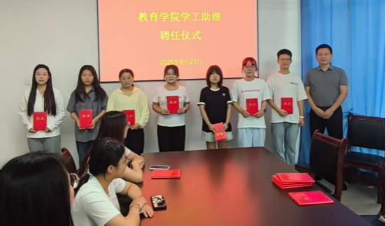 会上,罗从政宣读了新一届员工工作助理名单。王毅为任期届满且工作满一年的学工助理颁发了聘书,以表彰他们的辛勤付出。
