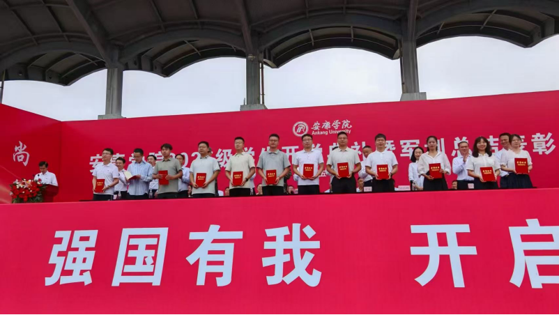 2025级学前教育专业麻帅华在军训总结表彰大会上发出“家国情怀”“理想航向”“本领淬炼”三项约定,代表全体新生宣誓:“请党放心,强国有我!”