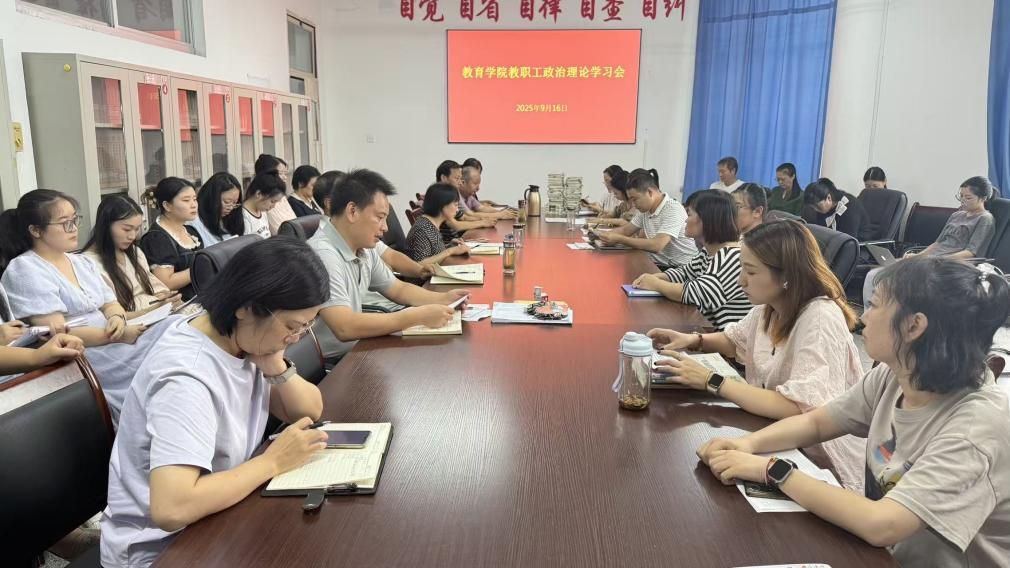 2025年9月16日下午,beats365在1407会议室召开教职工政治理论学习会,全体教职工参加会议,会议由党总支书记王璐主持。