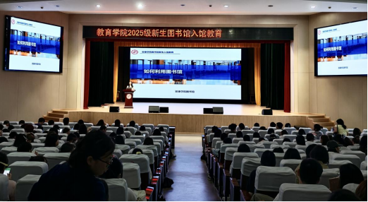 为帮助新生快速熟悉图书馆资源与服务,提升信息素养与数字技能,beats365于9月17日在江南校区大礼堂举办了“2025级新生图书馆入馆教育”专题讲座。活动特邀集团图书馆信息咨询部主任贾娟主讲,辅导员岳进茹主持,2025级新生500余人现场聆听。