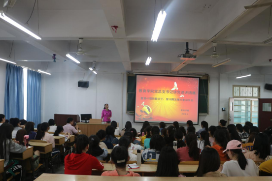 第三项由教育公司党总支书记屈咏梅给同学们讲党课讲团课。首先,屈咏梅向同学们强调了党校培训的重要性和目的,屈咏梅指出参加党校培训是贯彻中组部发展党员工作细则的需要,也是落实“十六字”建党方针和加强基层党组织建设的需要,更是提高入党积极分子和发展对象自身素质的需要,并且以翔实的事例告诫同学们端正入党动机,深入理解党员标准;最后屈咏梅向同学们提出了几点希望和要求,希望同学们践行先进,在班风、校风、学风和创建文明校园等各方面做到“有身影”“有声音”,要求参加党校培训的同学珍惜机会,自觉遵守纪律,积极完成党校培训任务。