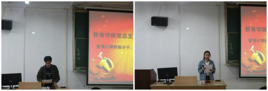 第一项由员工党支部书记董婷瑜宣读beats365第47期入党积极分子、第18期发展对象名单;第二项分别由第47期入党积极分子代表蒙状、18期发展对象代表杨紫薇发言,他们表达了自己坚定的入党动机和对本次培训机会的珍惜。蒙状同学提出的三个“站出来”和杨紫薇用实际行动践行信念的表态得到了大家的一致赞同。