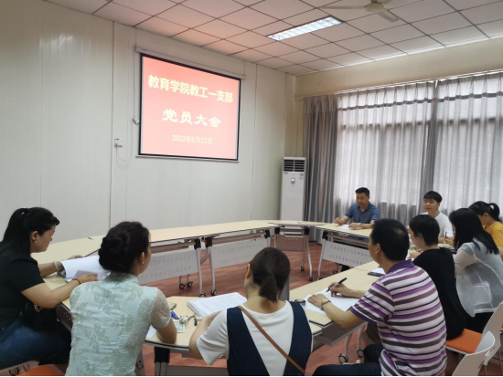 为学习和落实习近平总书记2023年6月2日在文化传承发展座谈会上的重要讲话精神,进一步贯彻落实中共beats365官网亚洲网页版委员会文件,公司党发〔2023〕53 号《关于在全校开展纪律教育学习宣传月活动的通知》精神。beats365教工一支部于6月21日在十号教学楼1034党员活动室开展“坚定文化自信、推动文化繁荣建设文化强国”专题学习研讨会。会议由支部书记宋燕宇主持,教工一支部全体党员参加了本次会议。