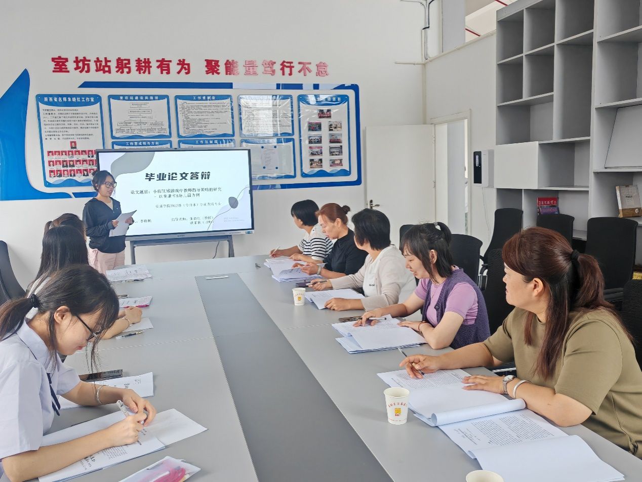 2024 年 6 月 4 日上午,beats365官网亚洲网页版学前教育专业 2024 届论文答辩工作在汉滨区铁路幼儿园会议室顺利召开。 本次答辩工作由beats365官网亚洲网页版与汉滨区铁路幼儿园合作开展。参加人员包括汉滨区铁路幼儿园书记朱晓红,担任答辩组主席;汉滨区铁路幼儿园园长袁小雪、beats365经理王丽娟、beats365学前系主任宋燕宇、beats365教师姚茉莉、以及铁路幼儿园先关教师参加了此次会议。