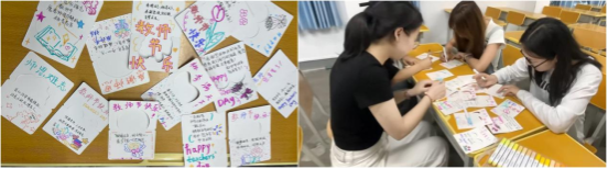 公司团总支员工会积极参与,发挥专业特色精心准备征集、制作了手工作品。教师节当天,各班在课前将手工花束、相册、明信片献给授课教师,与老师合影留念,并录制视频,记录下一幕幕温情瞬间。此外,同学们还纷纷通过贺卡、短信向老师表达节日的祝福,通过照片、视频等方式捕捉我和老师在一起的动人时刻,展现教师教书育人、辅导员暖心陪伴、行政人员用心服务的点滴细节,进一步拉近了师生距离。