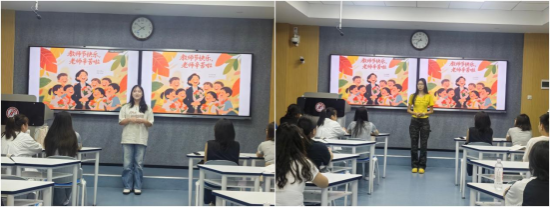 本次活动内容丰富、形式多样。各班级教师节前夕组织召开了感念师恩主题班会,同学们通过分享与老师相处的暖心故事,了解教师节的厚重历史,重温优秀教师的育人典范,进一步加深了对教师辛勤付出的理解。教师节当天,同学们在课堂上集体向老师鞠躬致意,齐声送上老师,您辛苦了;老师,节日快乐真诚祝福。