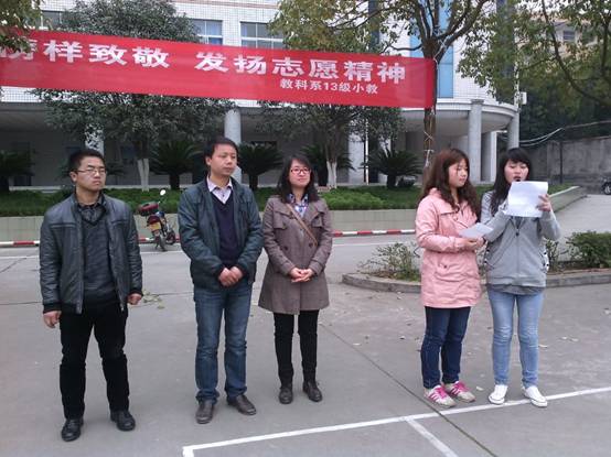 进入三月“学雷锋活动月”,公司掀起以实际行动纪念雷锋的热潮。各种以学雷锋为主题的公益活动贯穿整个三月,各班都以义务劳动、同学互助、社会实践等形式,在理解爱、感受爱、传递爱的过程中,大力学习、弘扬和践行雷锋精神。13级小教理、小教文1、小教文2为响应校团委的号召,在教科系团总支的倡导下,联合组织开展了学雷锋活动,3月12日,三个班的同学在beats365官网亚洲网页版前操场举行学雷锋活动动员大会,动员大会鼓舞了同学们参与学雷锋活动的士气,接着13级小学教育各班有组织有计划地进行本班的学雷锋活动。