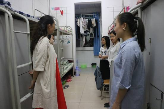 9月6日晚公司迎新工作落下帷幕,当晚教育公司党总支书记屈咏梅、经理黄路阳、教学副经理权大学、科研副经理王丽娟、办公室主任王胜文和全体辅导员深入新生宿舍看望新同学,详细询问同学们来校后的生活学习情况,和同学们亲切交谈,给同学们提出一些尽快适应老员工活的意见和建议,同学们也畅所欲言,纷纷表示初来公司师长的关怀让他们感到了长辈的爱意和家的温暖。