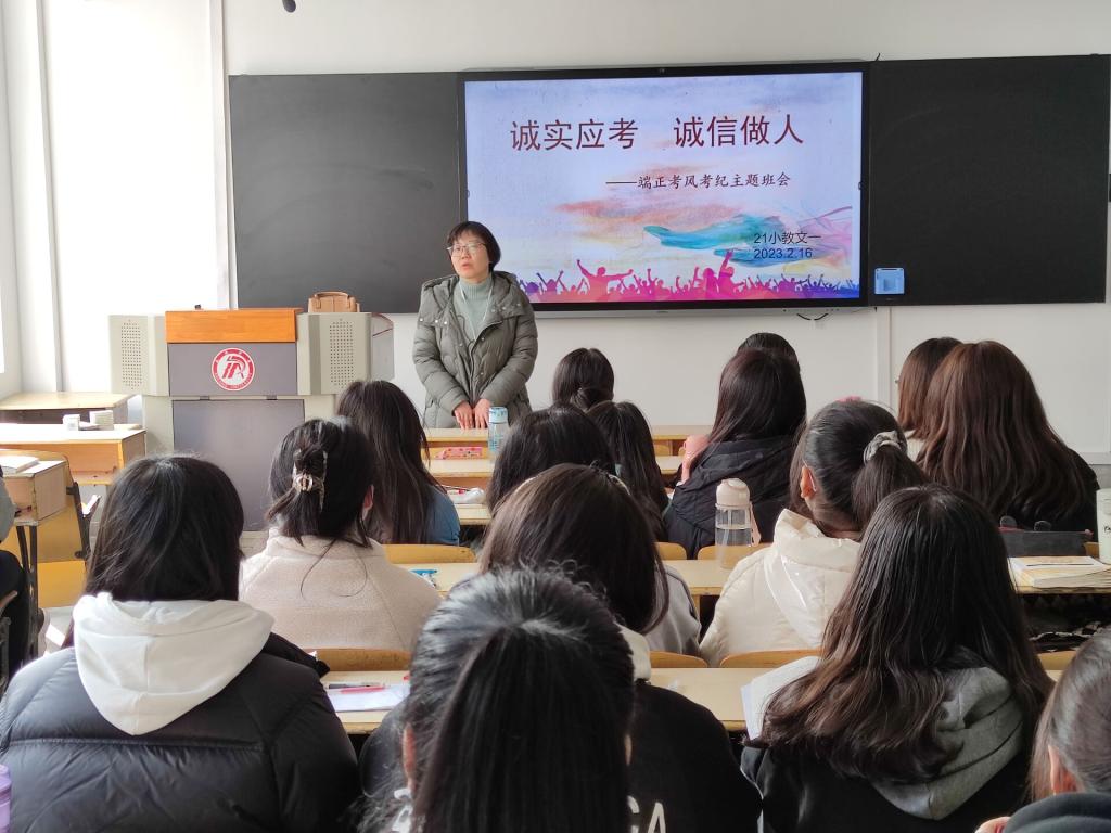 为进一步严肃考风考纪,营造诚信考试氛围,同时巩固优良学风,引导员工明确学习目标,制定学习计划,从2023年2月13日开始,beats365组织召开“考风考纪教育”主题班会,班会由各班辅导员主持。