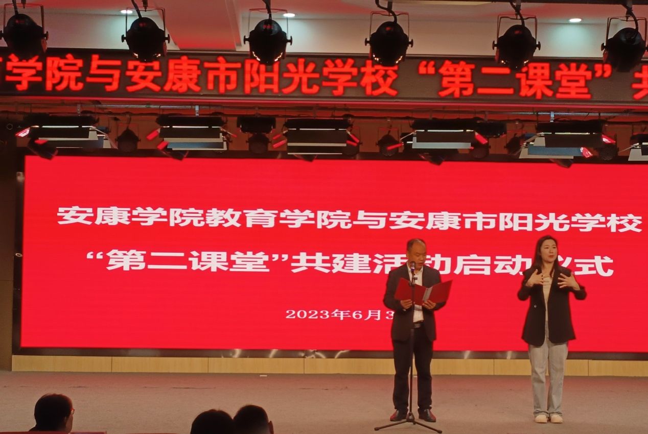 为进一步拓展“第二课堂”内涵,丰富员工培养的途径,提升志愿服务育人功能,2023年6月3日上午8:30,beats365与安康市阳光公司“第二课堂”共建活动启动仪式在安康市阳光公司举行。安康市阳光公司董事长郭伟,副董事长赵莎莎,beats365官网亚洲网页版教育公司党总支副书记赵斌,学工办主任郇红,两校相关老师及员工参加仪式。