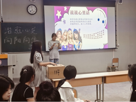 各班级以“我是谁?”、“拾光便签”、“聆听心灵声音”、“秘密树洞”等丰富多彩的心理健康教育小游戏为载体,通过游戏的感性活动,引导同学们在团体交往中通过观察、学习、体验,认识自我,探讨自我、接纳自我,调整和改善与他人的关系,提升自我心理素质。
