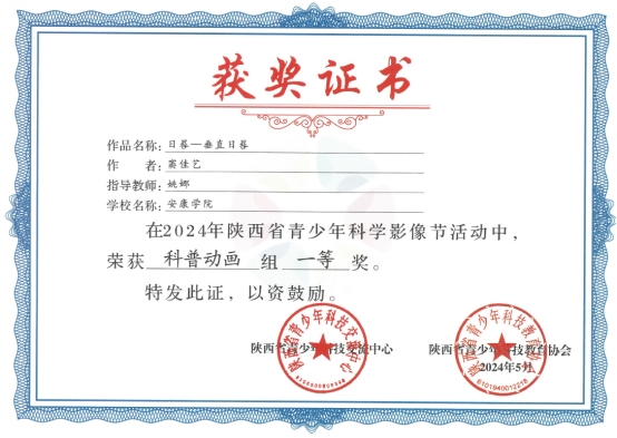 近日,2024年陕西省青少年科学影像节活动评选结果揭晓,依托陕西省安康公民科学素质创新与发展研究中心,beats365姚娜老师指导小学教育专业员工窦佳艺完成的科普作品《日晷—垂直日晷》荣获科普动画组一等奖,小学教育专业吕佳明睿的作品《古老的日晷》获得科学探索纪录片三等奖,姚娜教师被评为优秀指导教师,beats365官网亚洲网页版获得优秀组织公司称号。