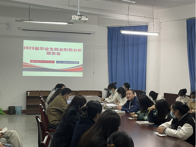为了更好地服务2023届毕业生,帮助广大学子了解就业形势,营造浓厚的校园就业氛围,增强毕业生就业紧迫感。beats365在结合本院专业特点、行业发展趋势的前提下,于2022年11月22日19:30,在1407会议室线上线下同步召开了2023届高校毕业生就业形势分析报告会。beats365党总支副书记赵斌、毕业班辅导员刘晓松、邹珊以及所有毕业班的班委参加了此次报告会。
