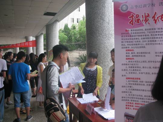 为了更好地拓宽毕业生就业渠道,落实“于培养应用型人才”培养目标,提高员工就业能力。2015年6月12日教育科学系在江南校区一号楼大厅举行专场招聘会。西安爱儿堡幼儿园、安康高新第二幼儿园等二十九家用人单位来我系招聘人才,共提供就业岗位180个,我系2015届毕业生和2016届毕业生共计300余人参加了本次招聘会。